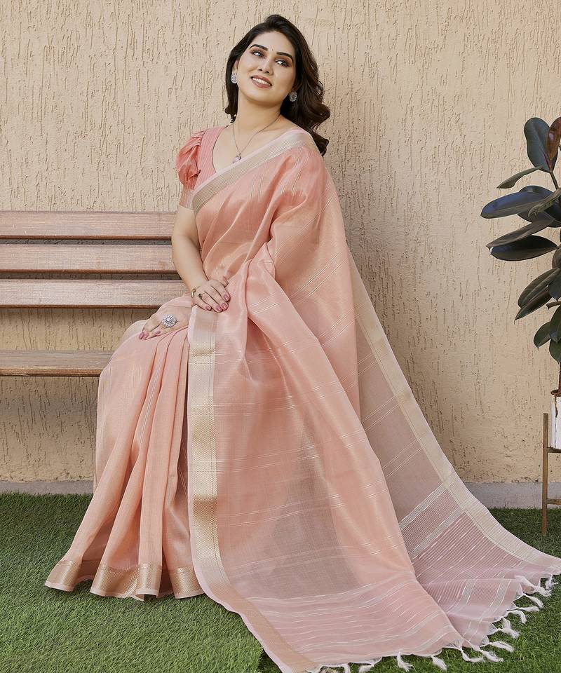 | Product Description | Soft Tissue Linen Silk Saree With Zari Linings To All Over The Body And Rich Zari Weave Pallu And Fine Zari Weave Border With Running Blouse Piece |