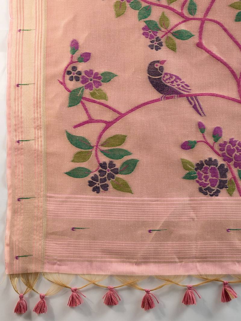 | Product Description | Premium Soft Moga Cotton Paithani Saree With Classic Resham Weaving Paithani Pallu And Zari Weaving Muniya Border With All Over Weaving Butties And Contrast Blouse Piece |