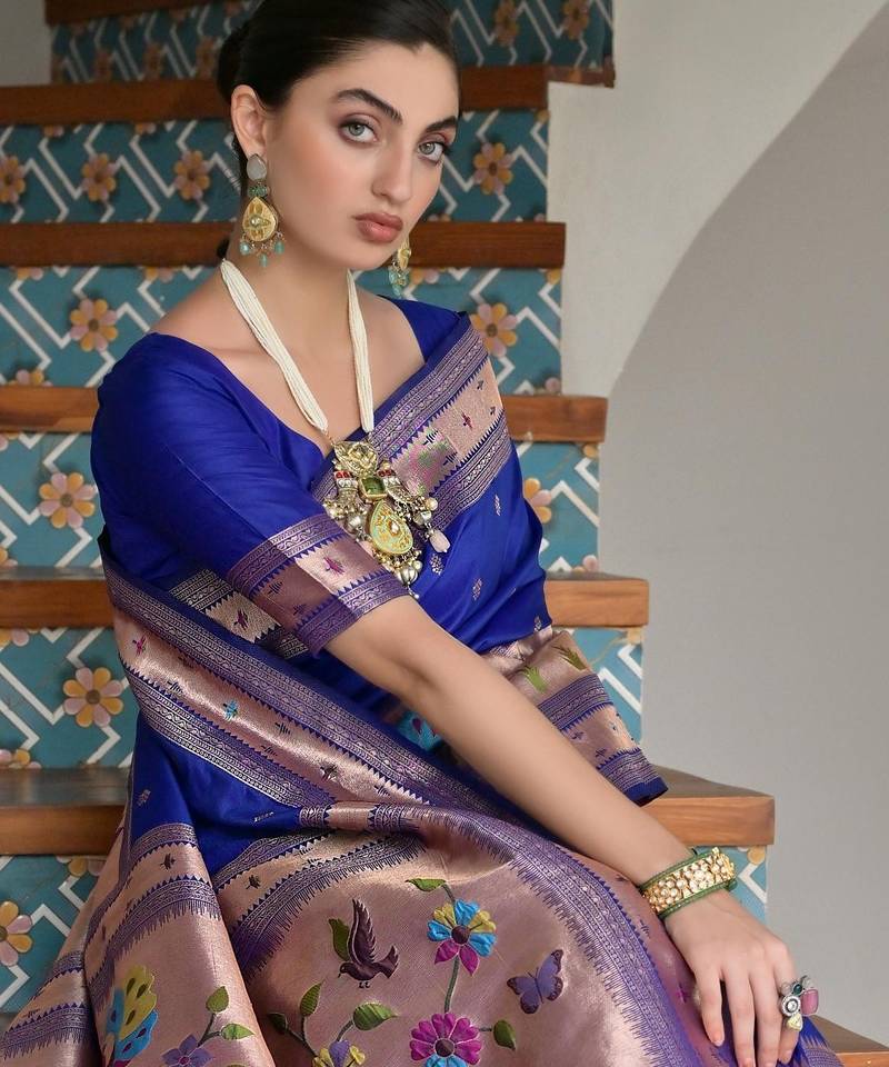 | Product Description | Soft Banarasi Silk Paithani Saree With Beautiful Zari Weaving Paithani Pallu And Tradional Meena Woven Big Border With Fancy Tassels And Running Blouse Piece |