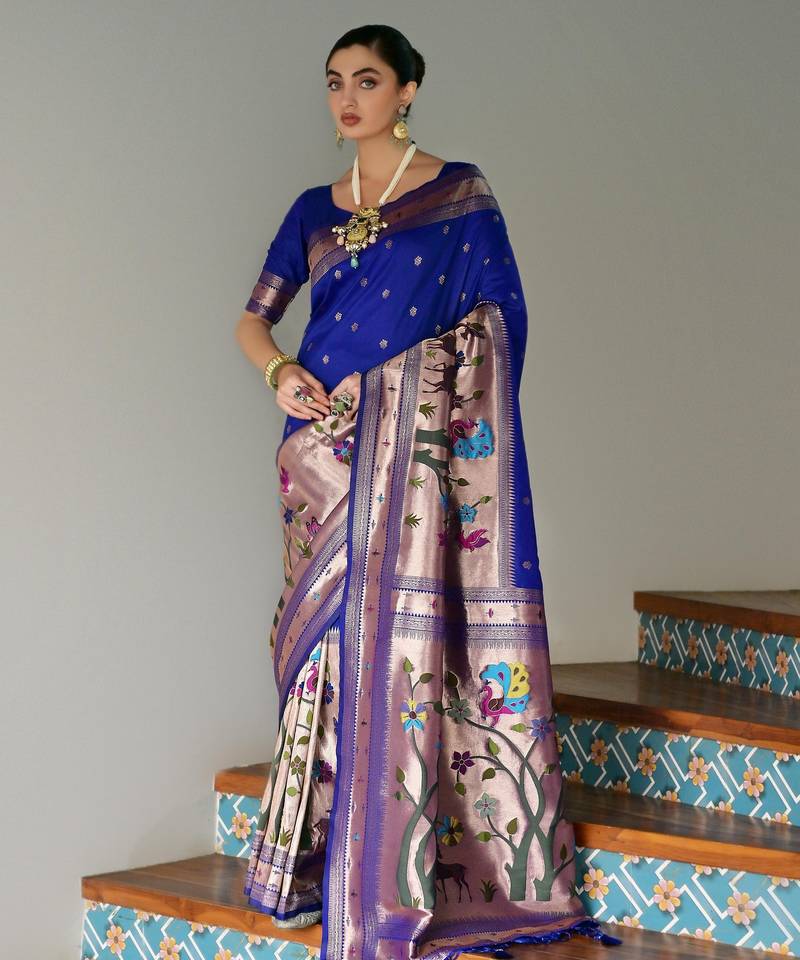 | • | Saree | : | Color- Royal Blue / Fabric- Silk Blend |