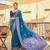 Teal elegant silk blend festive wear thread work beautiful border saree with blouse
