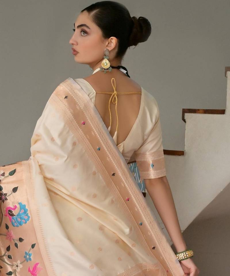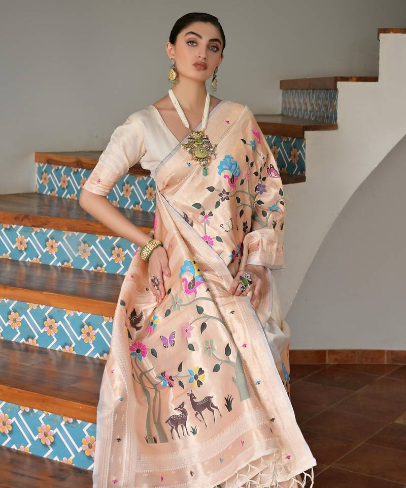 | Product Description | Soft Banarasi Silk Paithani Saree With Beautiful Zari Weaving Paithani Pallu And Tradional Meena Woven Big Border With Fancy Tassels And Running Blouse Piece |