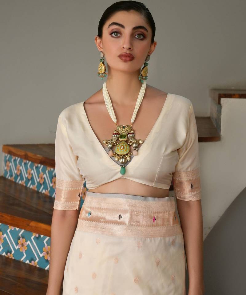 | • | Blouse | : | Color- White / Fabric- Silk Blend |