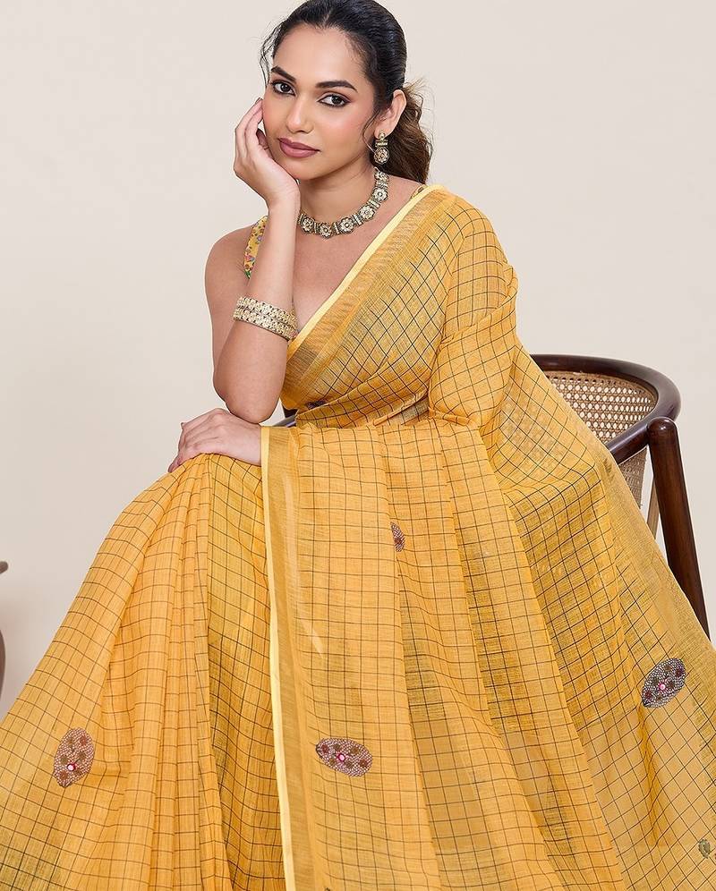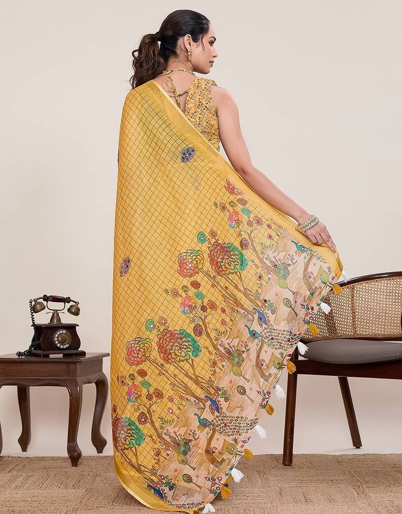 | Product Name | Yellow Linen Printed Saree With Blouse | |