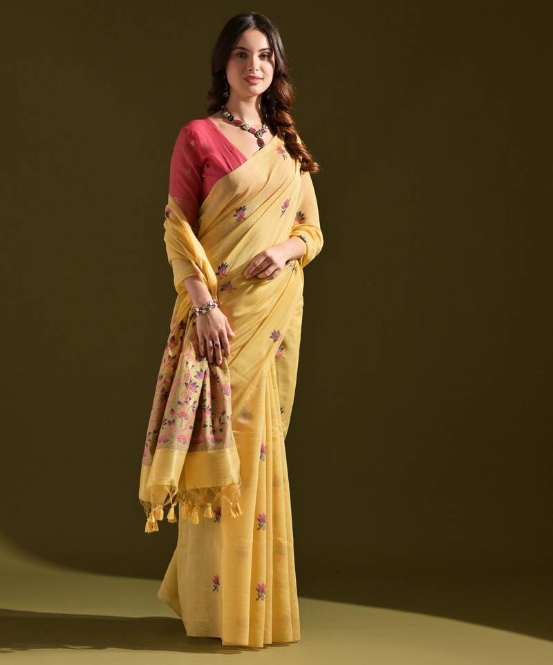 | • | Saree | : | Color- Yellow / Fabric- Blended Cotton |