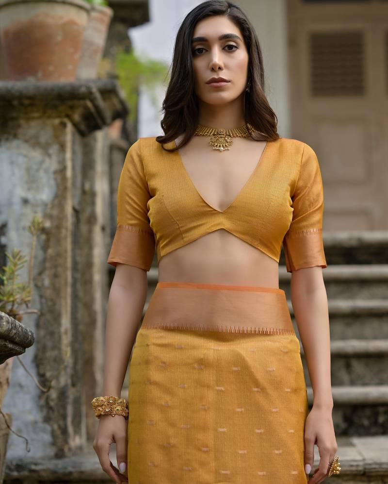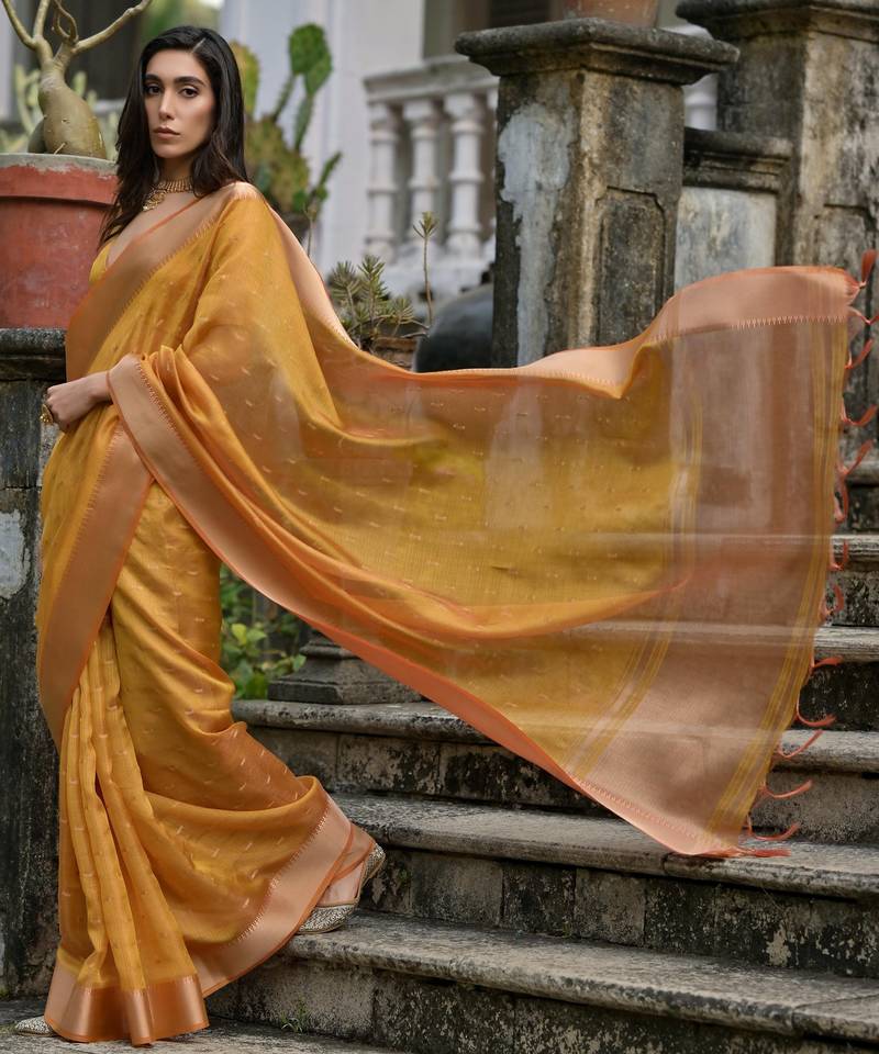 | Product Name | Yellow Solid Silk Blend Saree With Blouse | |