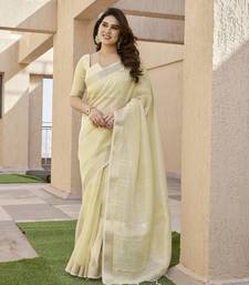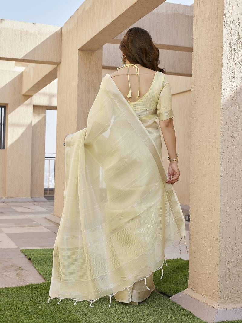 Soft Tissue Linen Silk Saree With Zari Linings To All Over The Body And Rich Zari Weave Pallu And Fine Zari Weave Border With Running Blouse Piece