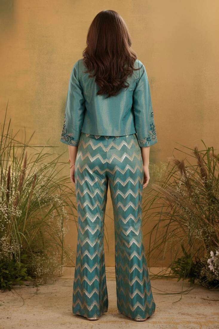 | Package Details | 1 Top:1 Palazzo :1 Ethnic Jacket | |
