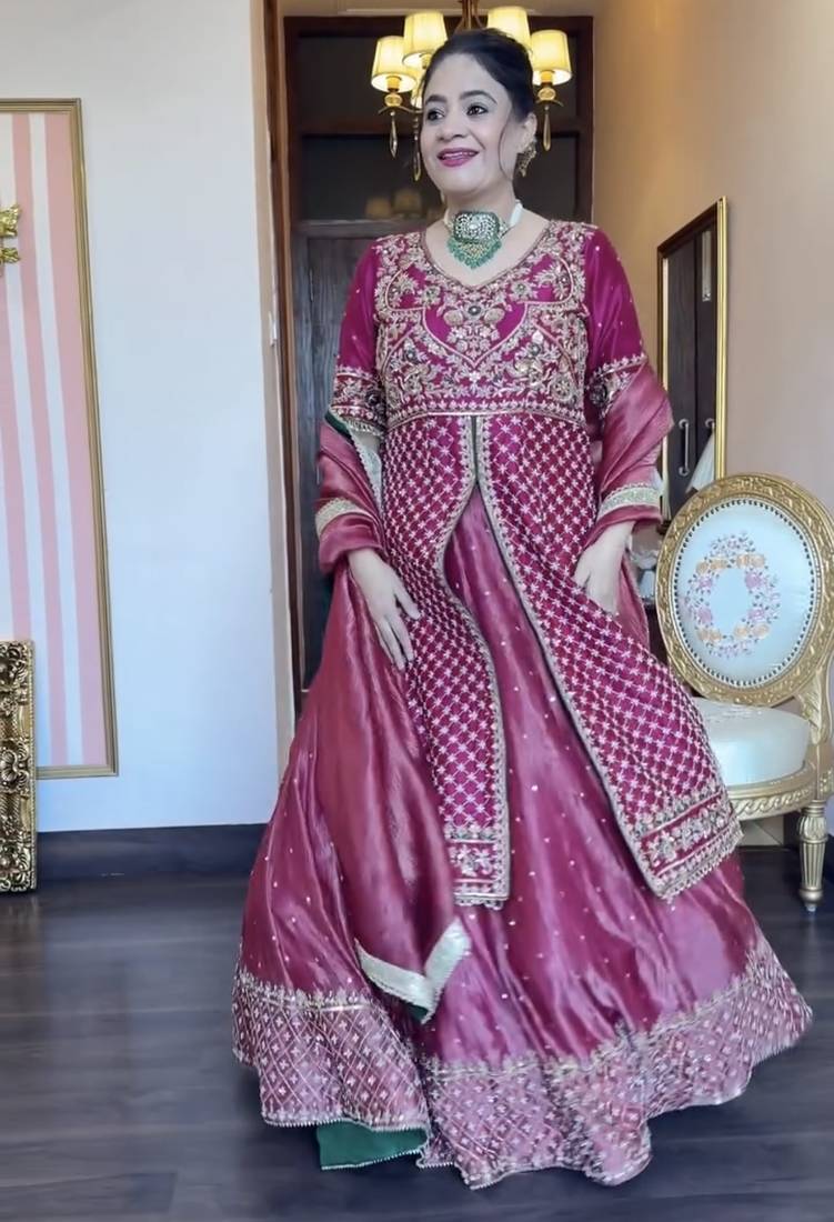 Febric Chinon Silk ,Work: Heavy Thread Annd Sequence Work