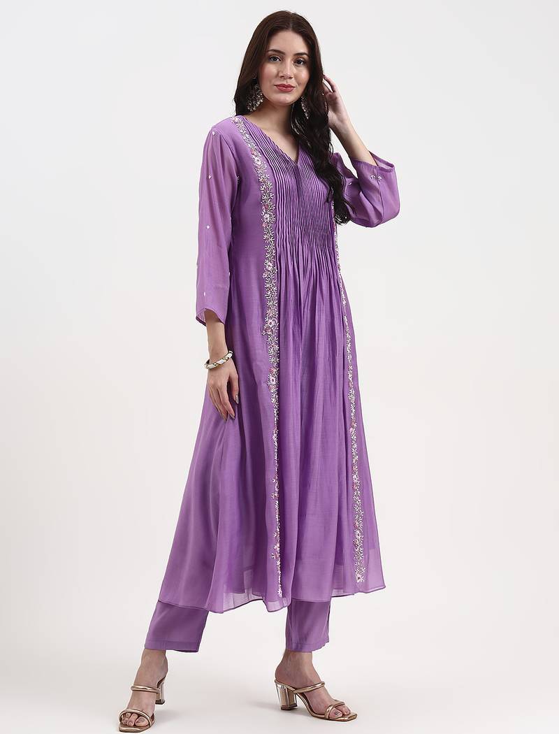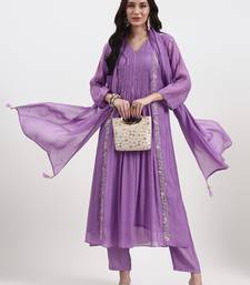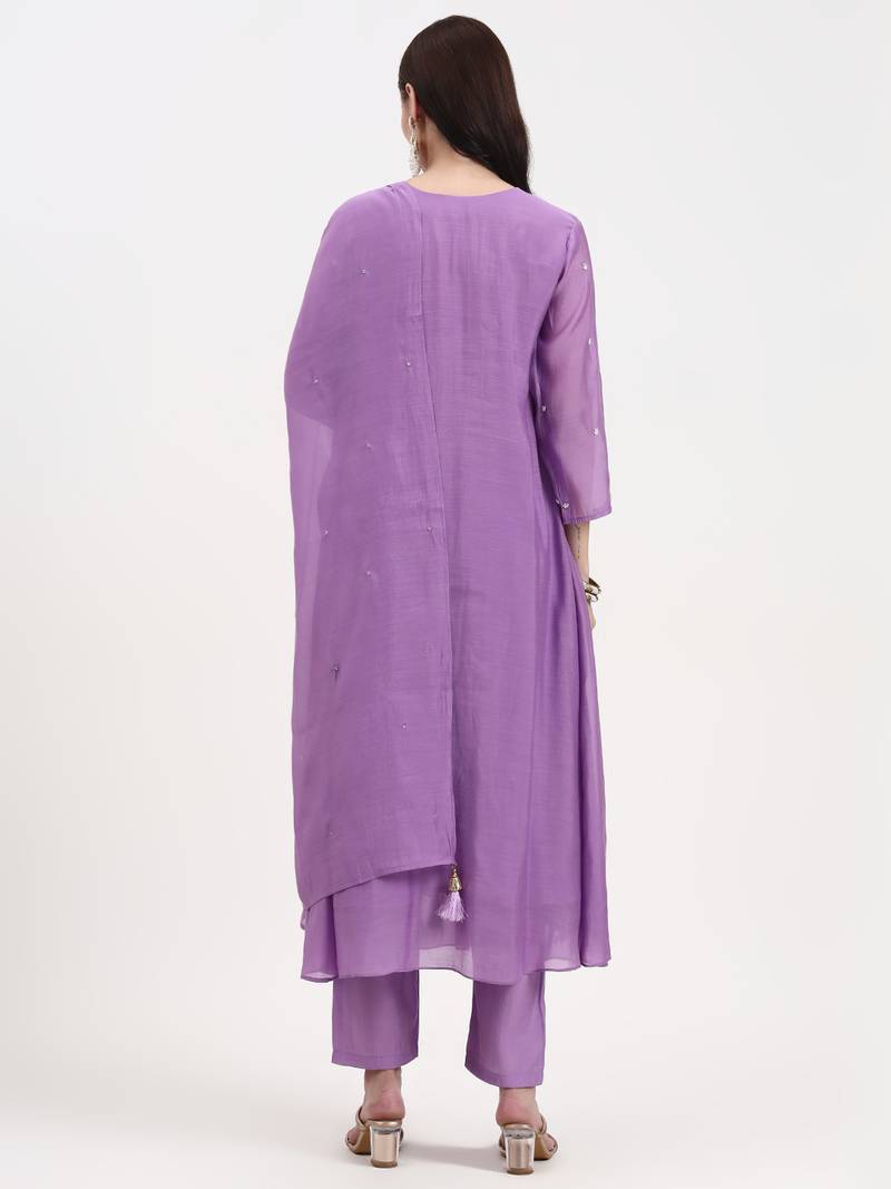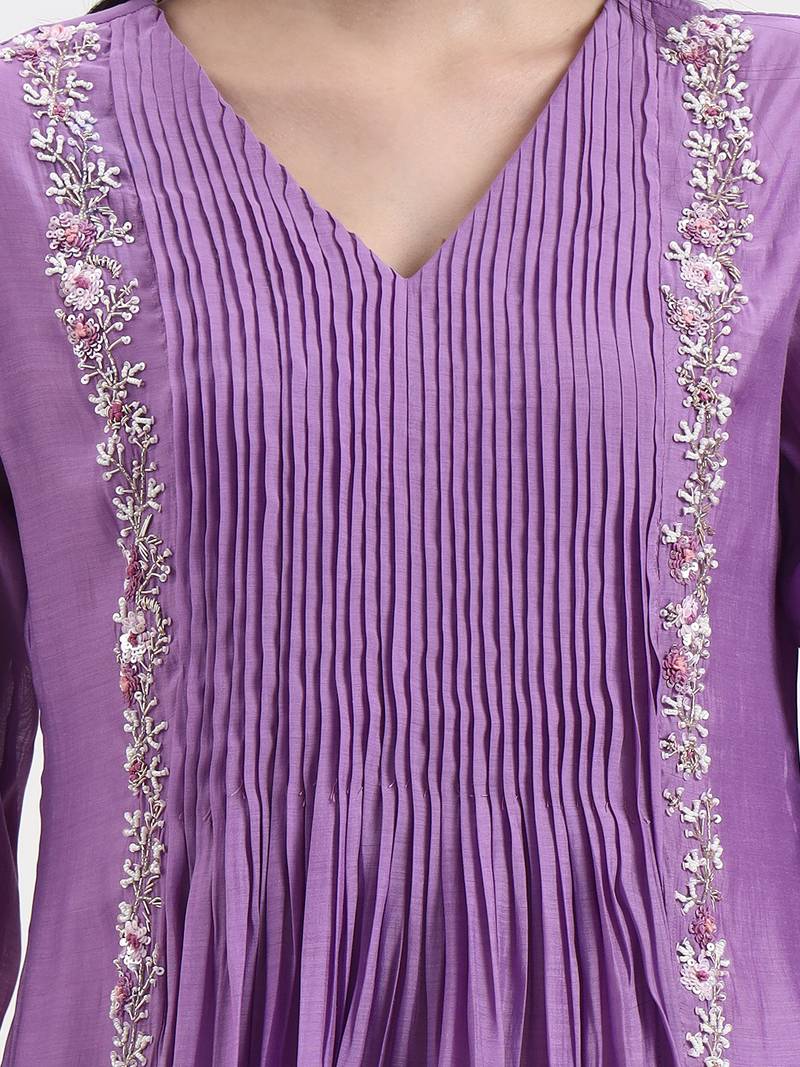 Product Name | Yufta Purple Mul Chanderi Kurta Dupatta Pant Set With Handwork | |