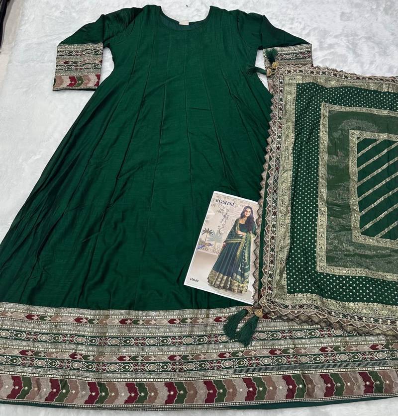 | Product Name | Bottle Green Heavy Silk Anarkali Suit Full Stitched Free Size | |