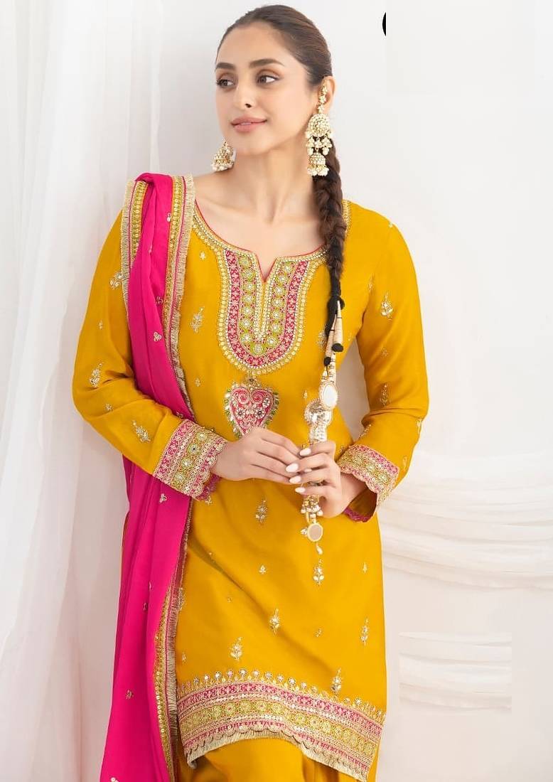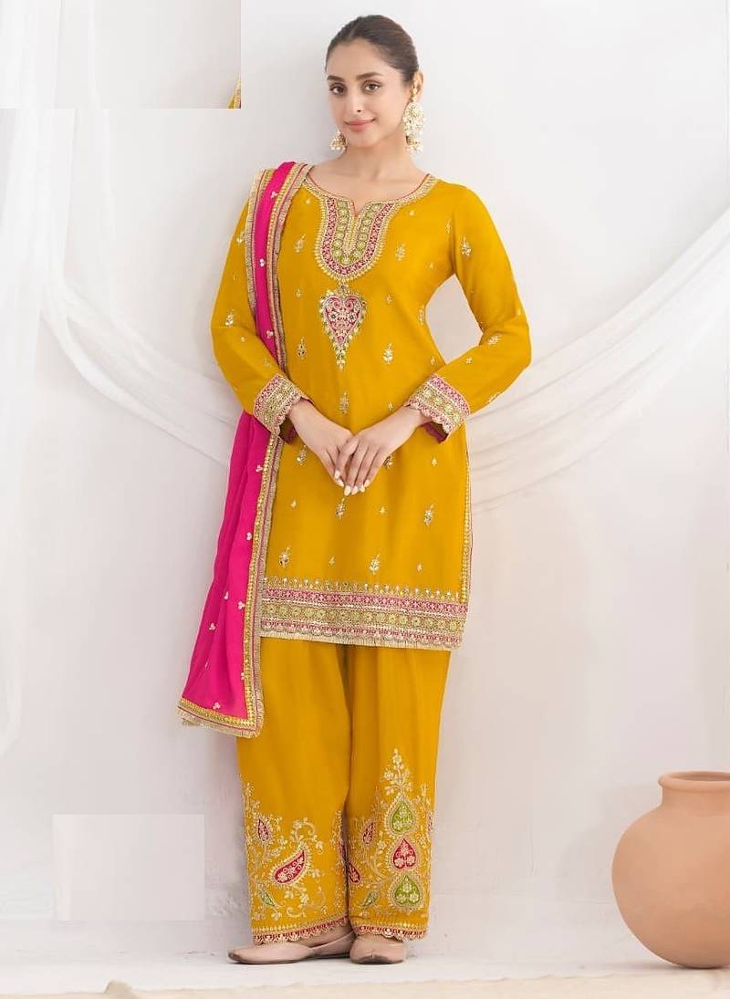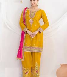 | Product Name | Yellow Heavy Chinon Pallazo Suit Full Stitched Free Size | |