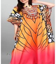 Multicolor digital printed stone work polyester crepe kaftan full- stitched - free size
