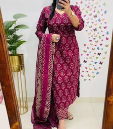 Product Name | Women Pure Cotton Printed Maroon Kurta With Pant And Dupatta | |