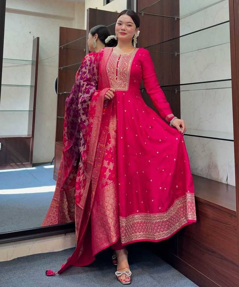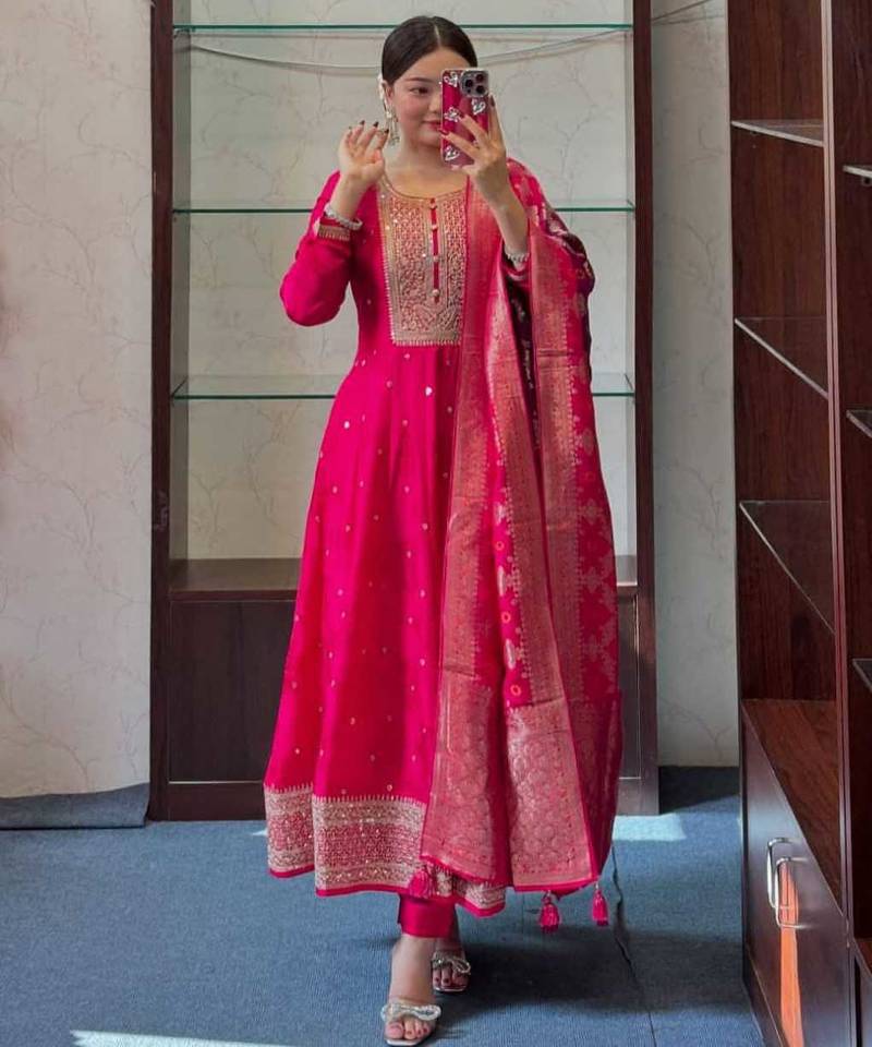 Product Name | Women Silk Embroidery Pink Kurta With Pant And Dupatta | |