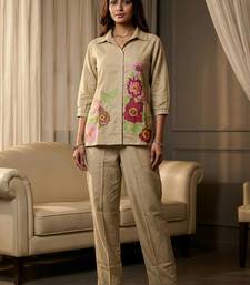 | Product Name | Floral Embroidered Beige Collar Neck Cotton Co Ord Set | |