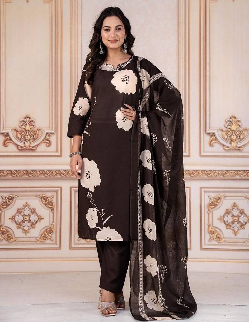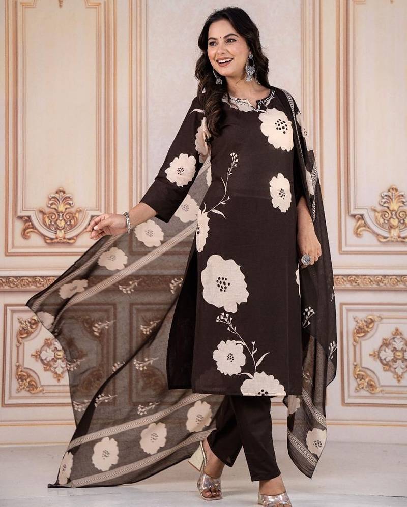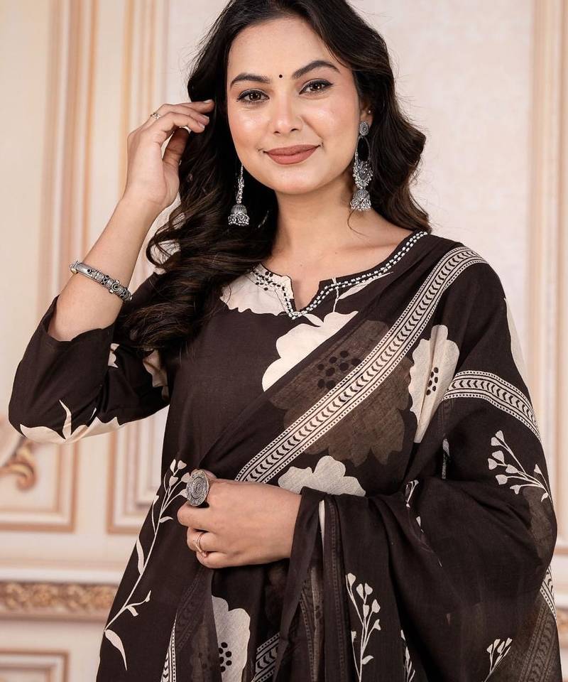 | Product Description | Add A Touch Of Sophistication To Your Wardrobe With This Floral Embroidered Black Kurta Set, Designed For Women Who Love Versatile And Stylish Ethnic Wear. The Rich Black Base Paired With Light Floral Motifs Creates A Bold And Classy Look. This Set Features A Straight Fit Kurta, Matching Trouser, And A Beautifully Printed Dupatta That Completes Your Refined Ethnic Ensemble. Key Features Elegant Black Color That Enhances Any Festive Or Formal Look Contrasting Floral Embroidery For A Striking Appearance Comfortable Round Neck And 3/4th Sleeves Straight Fit Kurta Paired With Easy To Wear Trouser Flowing Dupatta With Matching Floral Print Available Sizes: M, L, Xl, Xxl Perfect For Festivals, Evening Functions, Office Celebrations, Dinner Events, And Cultural Occasions. |