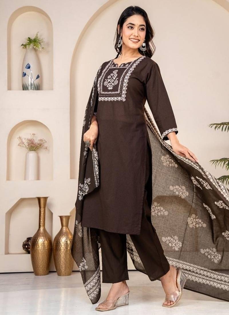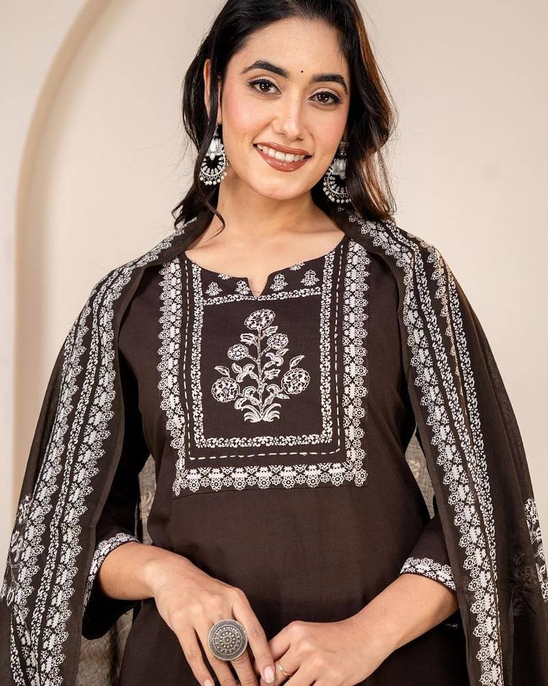 | Product Description | Make An Elegant Statement With This Floral Embroidered Black Kurta Set, Designed For Women Who Love Bold And Sophisticated Ethnic Fashion. The Rich Black Base Enhances The Contrast Of The Floral Embroidery, Making The Outfit Perfect For Both Day And Evening Events. The Matching Trouser And Embroidered Dupatta Elevate The Ensemble, Giving It A Graceful Festive Charm. ⭐ Key Features Elegant Black Shade With Striking Floral Embroidery Round Neck Styling For A Clean, Refined Look Soft, Breathable Fabric For Maximum Comfort Straight Fit Kurta For A Flattering Silhouette Matching Trouser & Embroidered Dupatta Included Sizes Available: M, L, Xl, Xxl 🎯 Perfect For Evening Functions • Festivals • Office Ethnic Days • Celebrations |
