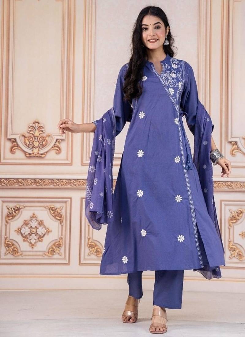 | Product Description | Step Into Refreshing Elegance With This Floral Embroidered Blue Kurta Set, Thoughtfully Crafted For Comfort And Style. The Soothing Blue Tone Combined With Intricate Floral Motifs Makes This Outfit Ideal For Both Day And Evening Wear. This Set Includes A Straight Fit Kurta, Stylish Trouser, And A Matching Printed Dupatta That Adds Flow And Grace To Your Overall Look. Key Features Stunning Blue Shade Perfect For Day Functions And Festive Gatherings Eye Catching Floral Embroidery For A Sophisticated Ethnic Style Classic Round Neck Design With 3/4th Sleeves Straight Fit Kurta Paired With Comfortable Trouser Lightweight Dupatta With Matching Floral Detailing Available Sizes: M, L, Xl, Xxl Perfect For Festivals, Family Functions, Office Wear, Casual Outings, And Traditional Celebrations. |