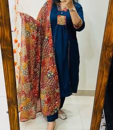 | Product Name | Floral Embroidered Blue V Neck Pure Cotton Kurta Set With Trouser & Dupatta | |