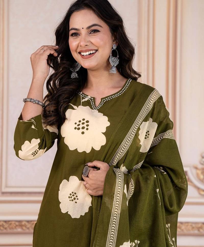 | Product Description | Bring Freshness And Charm To Your Style With This Stunning Floral Embroidered Green Kurta Set. The Refreshing Green Hue And Elegant Floral Detailing Make It A Standout Choice For Day Events And Festive Gatherings. The Straight Fit Silhouette, Breathable Fabric, And Matching Trouser Ensure Comfort, While The Flowing Dupatta Adds A Graceful Ethnic Touch. Key Features Refreshing Green Shade Ideal For Day Functions And Festive Wear Beautiful Floral Embroidery For An Elegant Ethnic Look Stylish Round Neck Design With 3/4th Sleeves Straight Fit Kurta With Comfortable Trouser Lightweight Dupatta With Floral Prints Available Sizes: M, L, Xl, Xxl Perfect For Festive Events, Haldi/Mehndi Functions, Office Wear, Family Gatherings, And Ethnic Celebrations. |