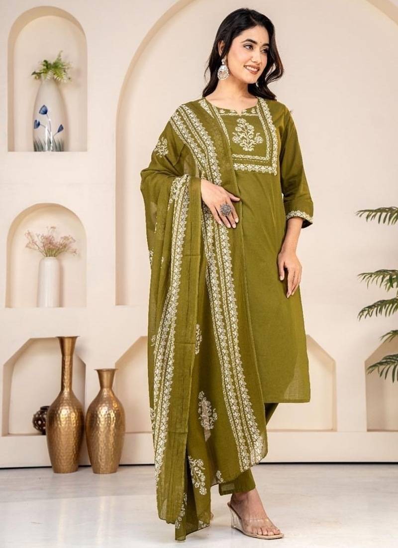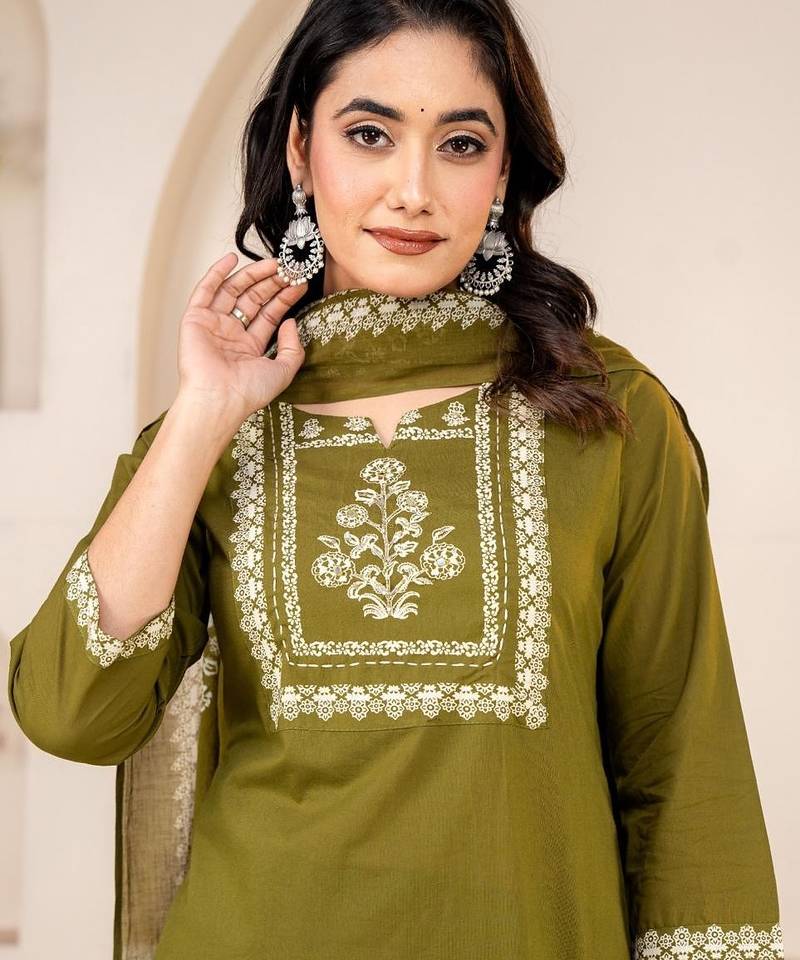 | Product Name | Floral Embroidered Green Round Neck Kurta Set With Trouser And Dupatta | |