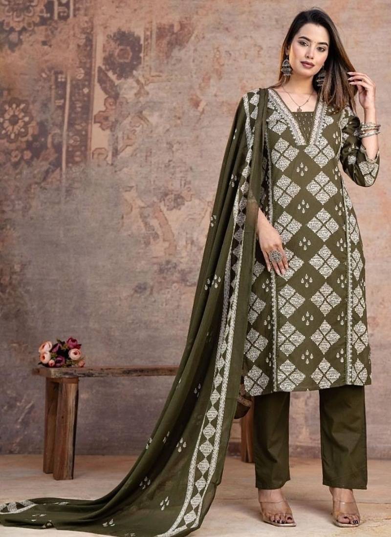 | Product Name | Floral Embroidered Green V Neck Pure Cotton Kurta Set With Trouser & Dupatta | |
