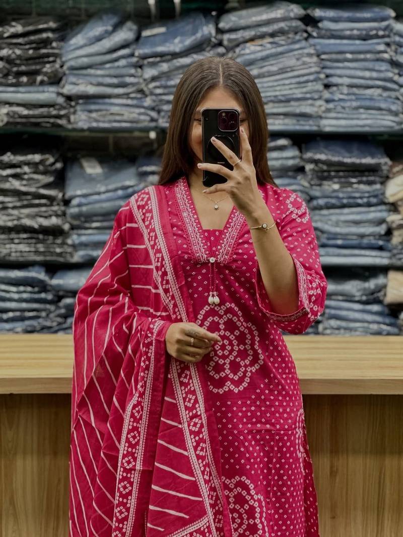 | Product Description | Make A Vibrant Style Statement With This Pink Floral Embroidered Cotton Kurta Set. The Bright Pink Shade Pairs Beautifully With White Embroidered Details, Offering A Festive Yet Comfortable Everyday Look. With A Soft Cotton Feel, Flared Palazzo Pants, And A Coordinated Striped Dupatta, This Outfit Is Perfect For Any Occasion. Key Features Fabric: Premium Cotton Color: Pink Design: Floral Embroidery + Traditional Print Accents Neckline: V Neck With Detailed Work Sizes: M–3 Xl Includes: Kurta + Palazzo + Dupatta Comfort: Skin Friendly & Breathable |