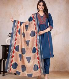 Blue printed cotton kurta pant with dupatta