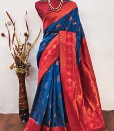Blue red soft silk blend banarasi jacuard work designer party wear saree with unstitched blouse piece