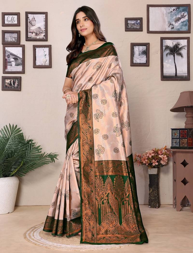 Product Name Cream Green Soft Silk Blend Banarasi Jacuard Work Designer Party Wear Saree With Unstitched Blouse Piece