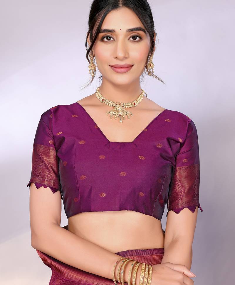 | • | Blouse | : | Color- Wine / Fabric- Banarasi Silk |