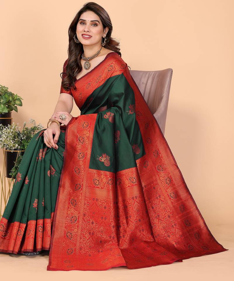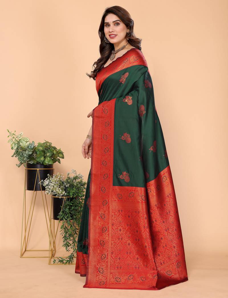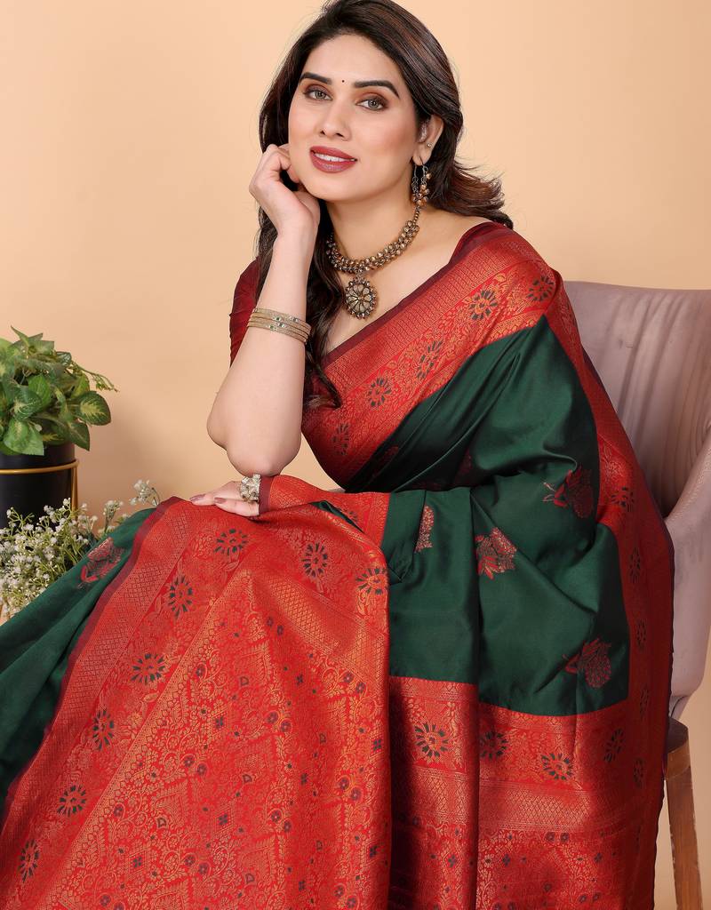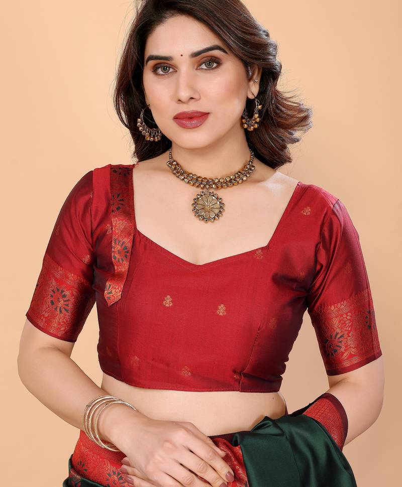 Product Name Green Red Soft Silk Blend Banarasi Jacuard Work Designer Party Wear Saree With Unstitched Blouse Piece