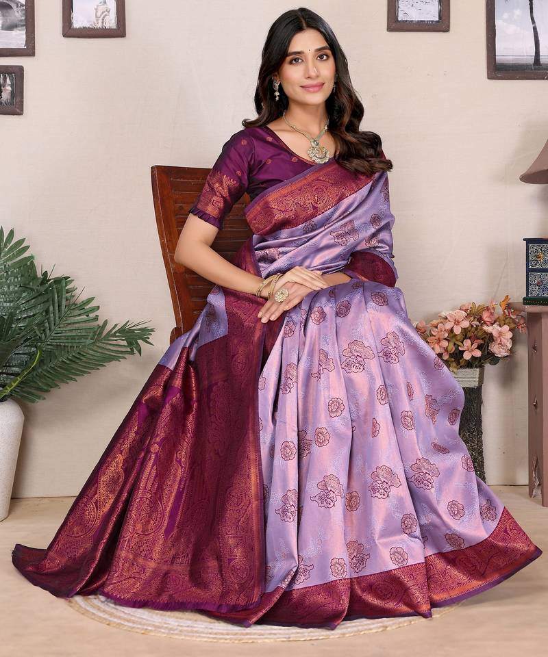 | Product Name | Lavender Wine Soft Silk Blend Banarasi Jacuard Work Designer Party Wear Saree With Unstitched Blouse Piece | |