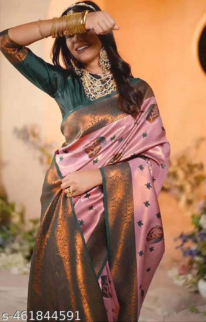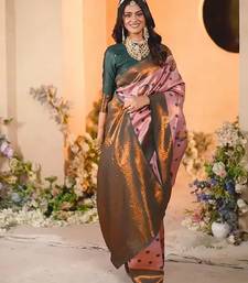 Light pink  green  soft silk blend banarasi jacuard work designer party wear saree with unstitched blouse piece