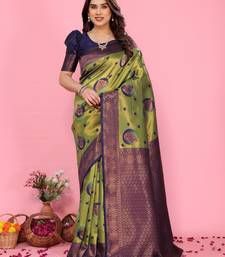 | • | Saree | : | Color- Mehendi / Fabric- Banarasi Silk |