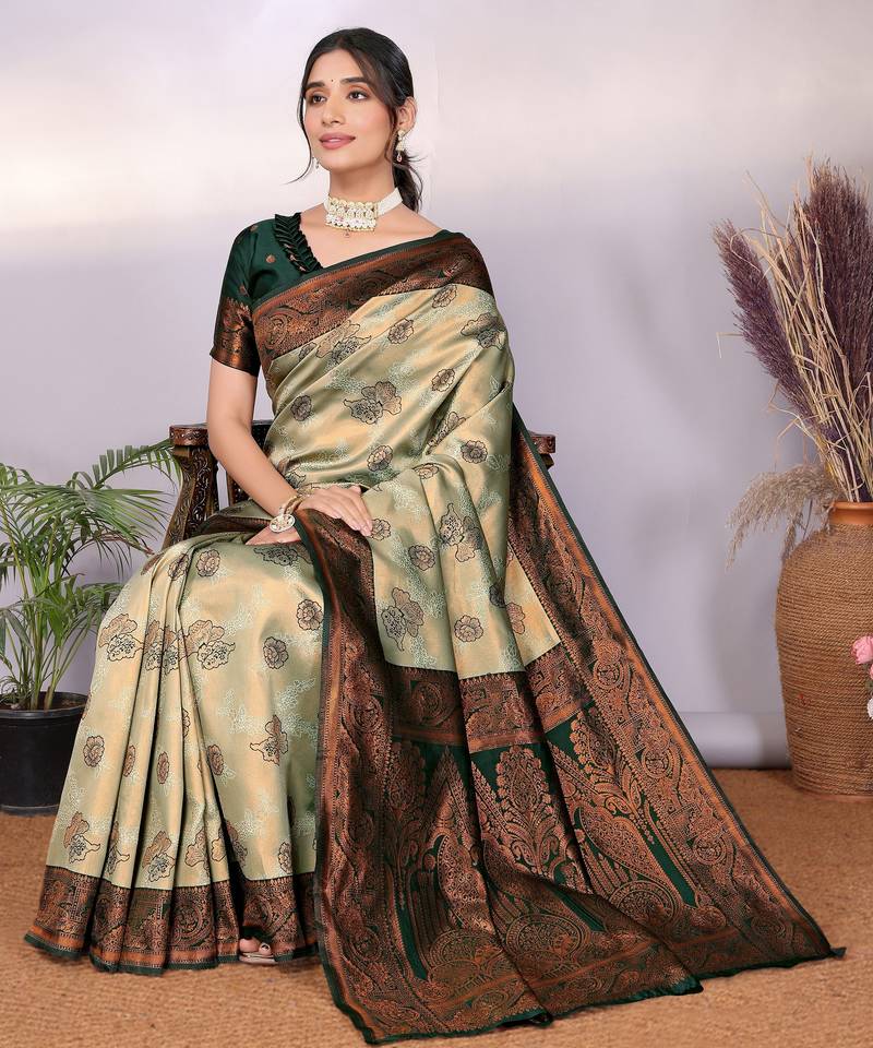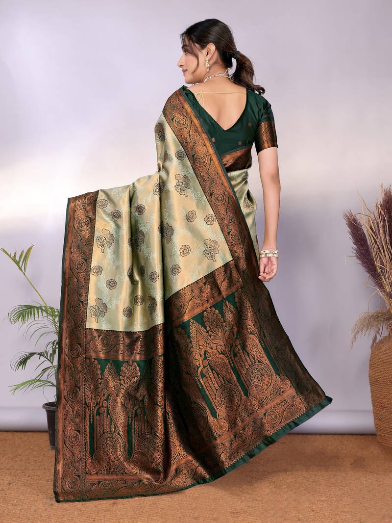 Pista green soft silk blend banarasi jacuard work designer party wear saree with unstitched blouse piece