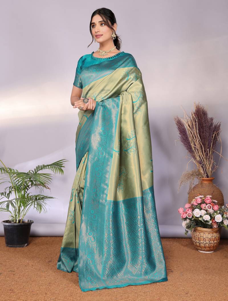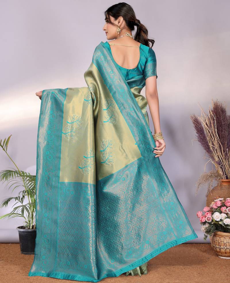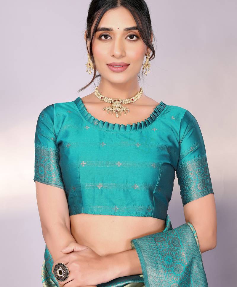 Rama rama soft silk blend banarasi jacuard work designer party wear saree with unstitched blouse piece