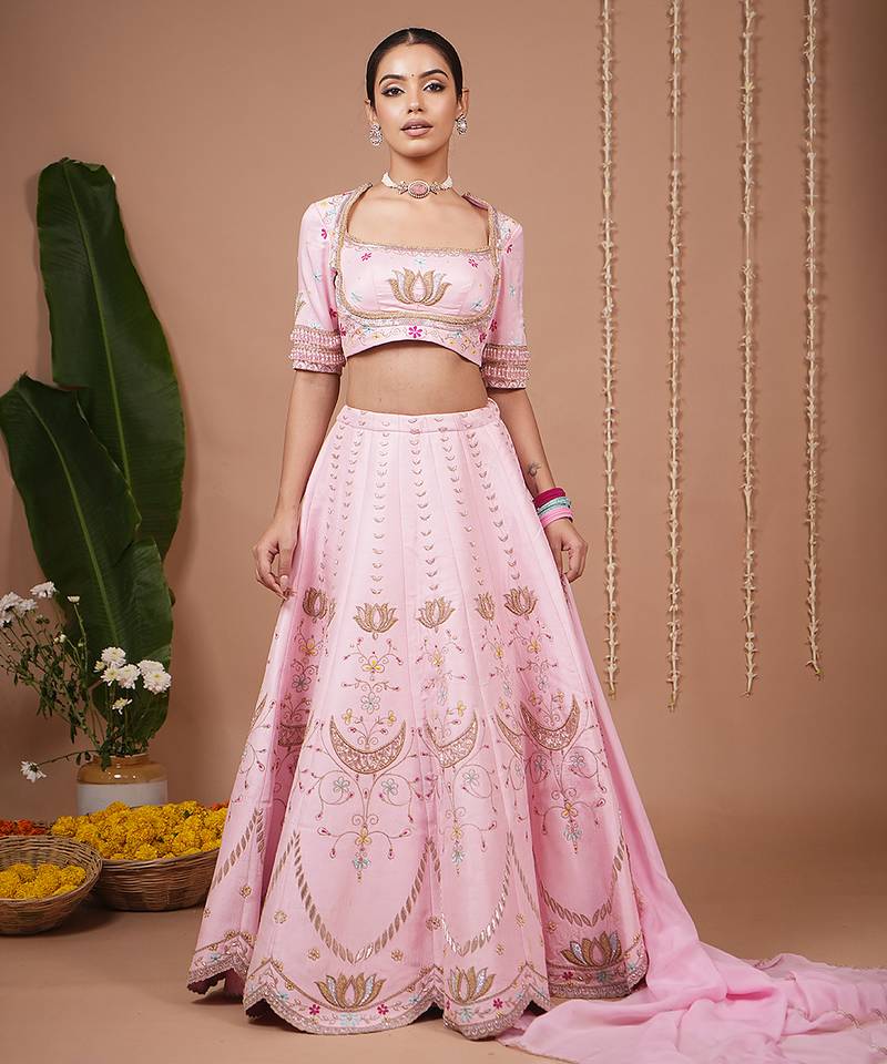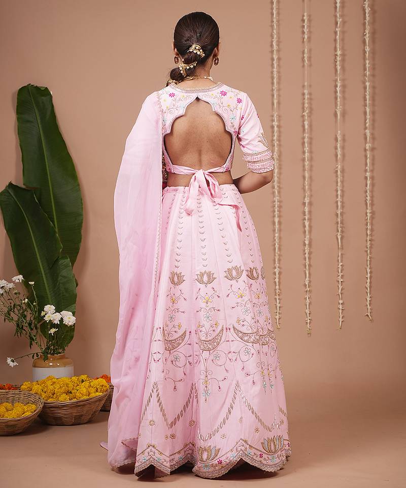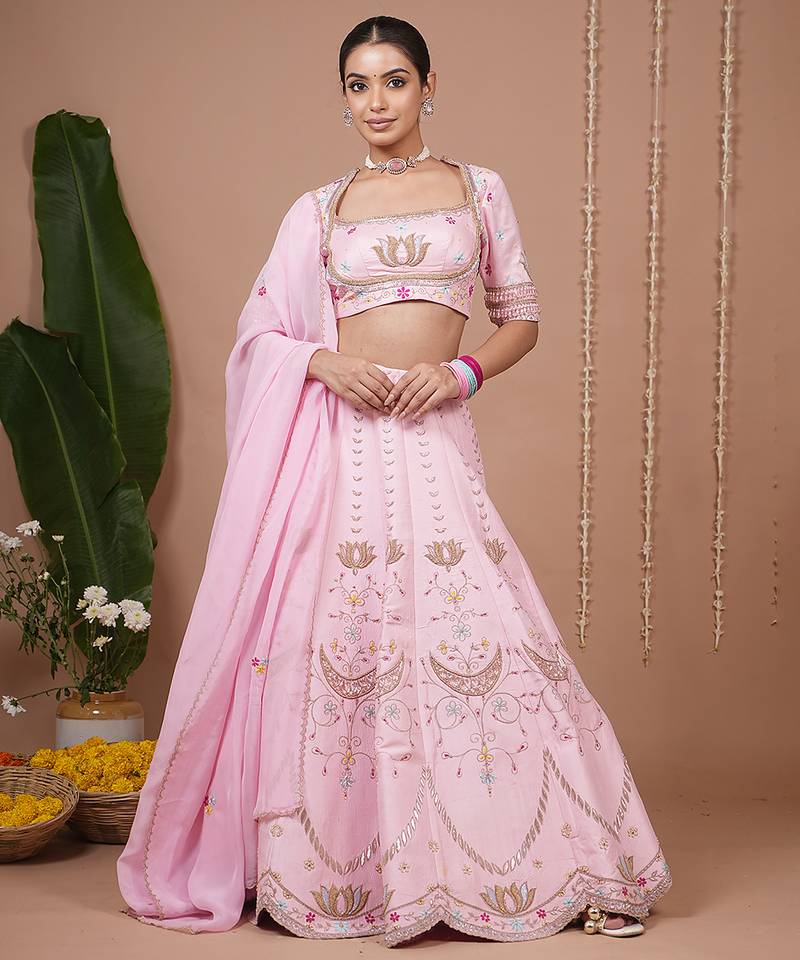 Baby pink embroidered silk lehenga