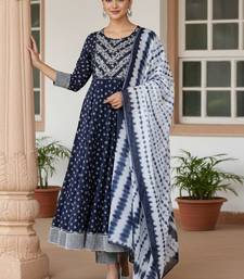 Blue color embroidered pure cotton styles kurta trouser with dupatta