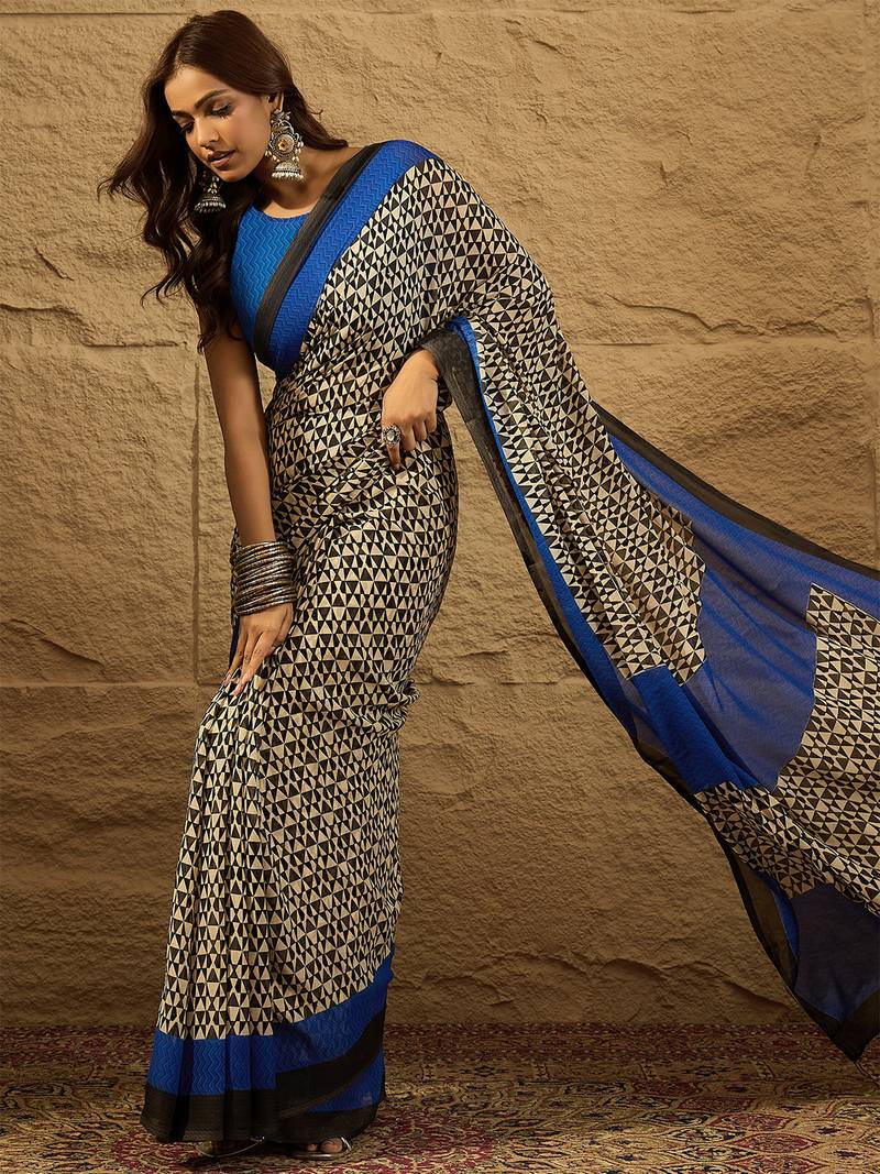 | Product Name | Blue Printed Chiffon Saree With Blouse Piece | |