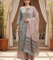Blue color printed pure cotton styles kurta palazzo with dupatta