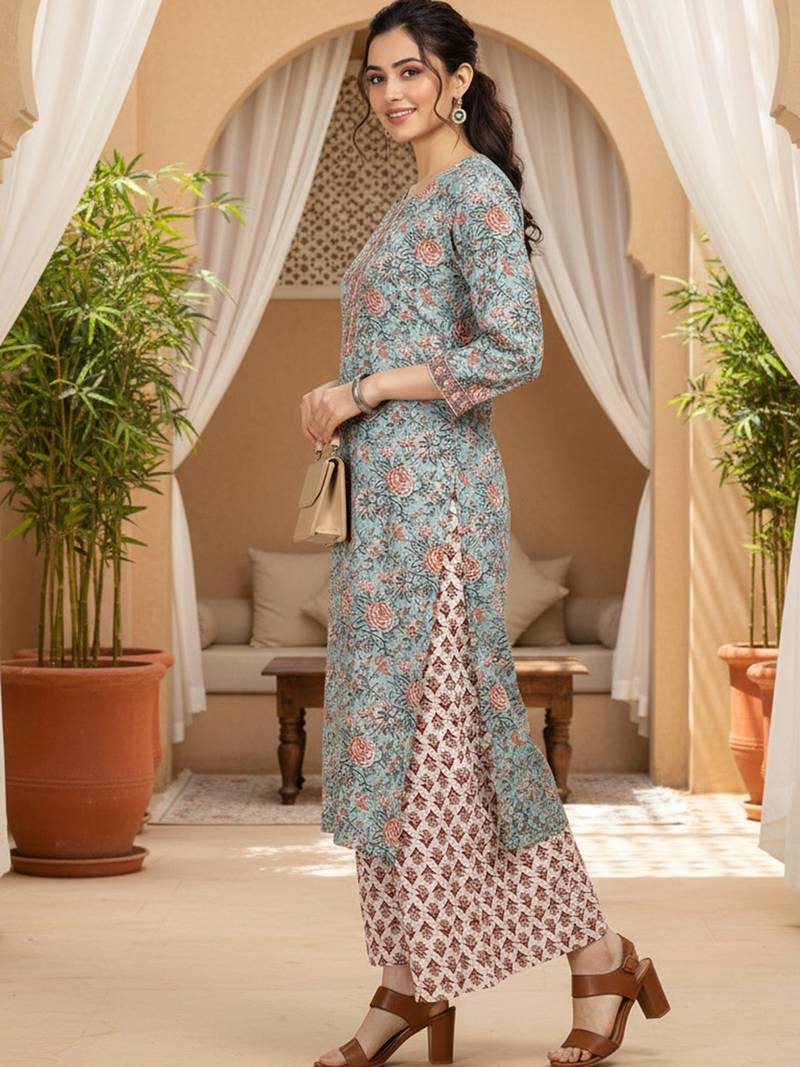 | Product Name | Blue Color Printed Pure Cotton Styles Kurta Palazzo With Dupatta | |
