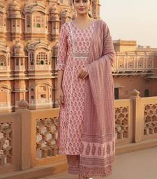 Pink color printed pure cotton styles kurta trouser with dupatta