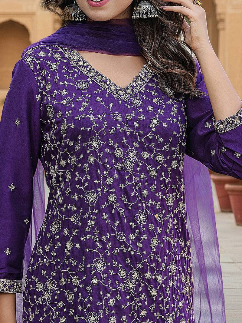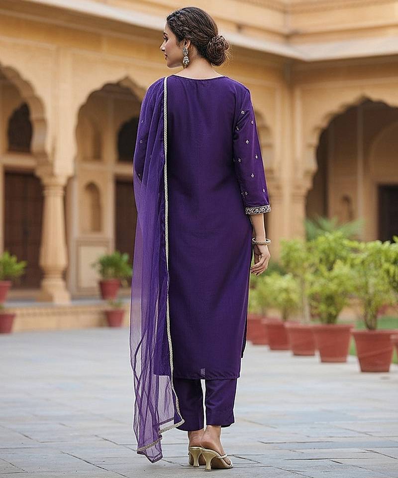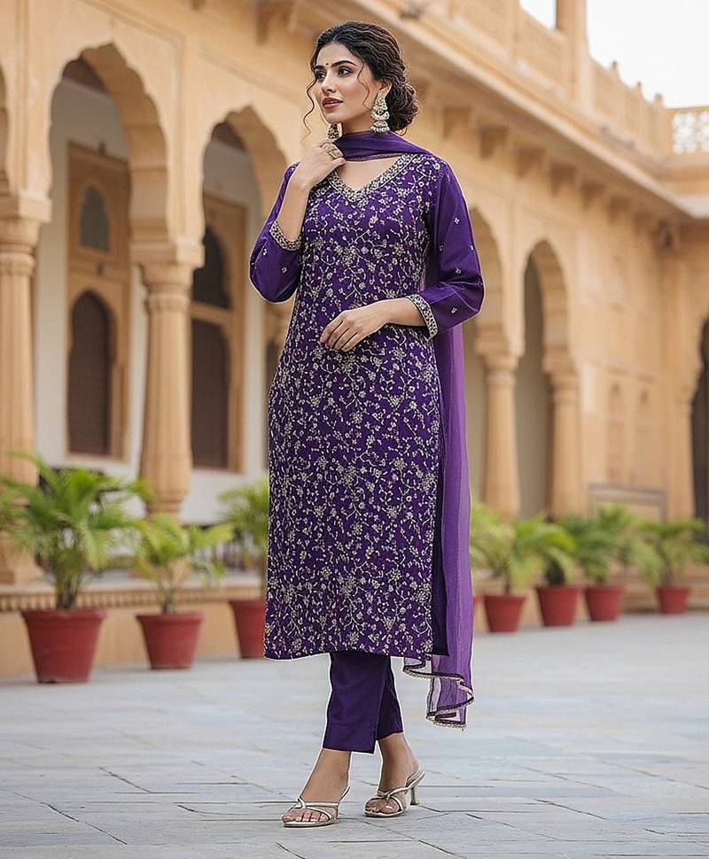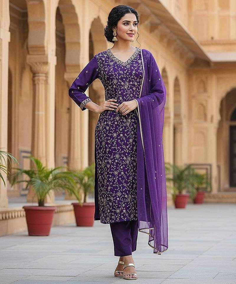 Product Name | Purple Color Embroidered Silk Blend Styles Kurta Trouser With Dupatta | |