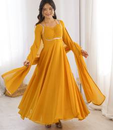 Elegant teal blue georgette anarkali gown with dupatta stitched