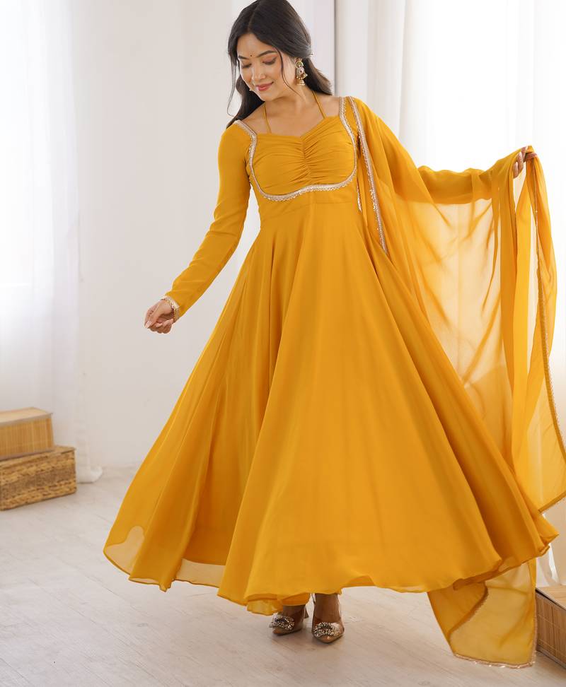 | Product Name | Elegant Teal Blue Georgette Anarkali Gown With Dupatta | |