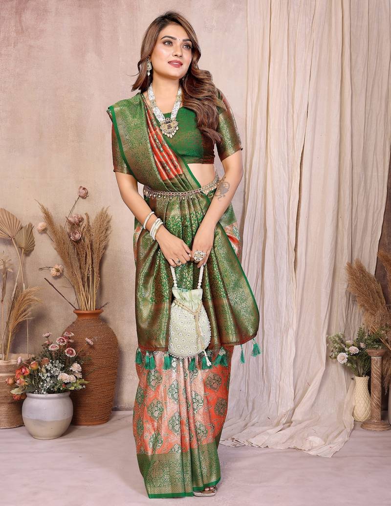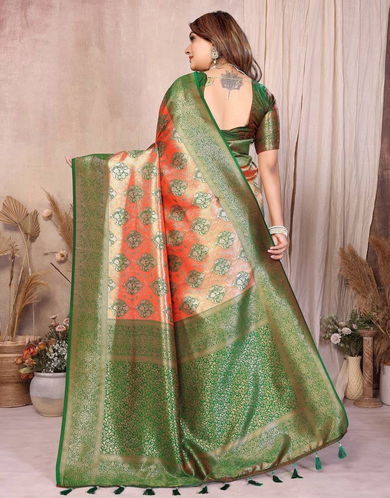 Product Name Orange Banarasi Tissue Art Silk Saree