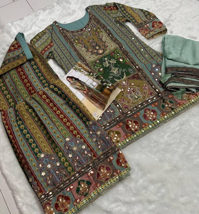 | Product Name | Sea Green Heavy Crepe Silk Sharara Suit | |