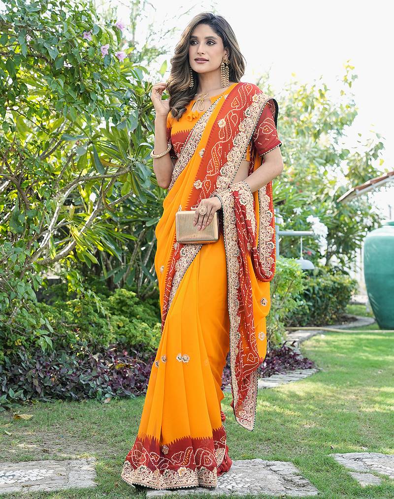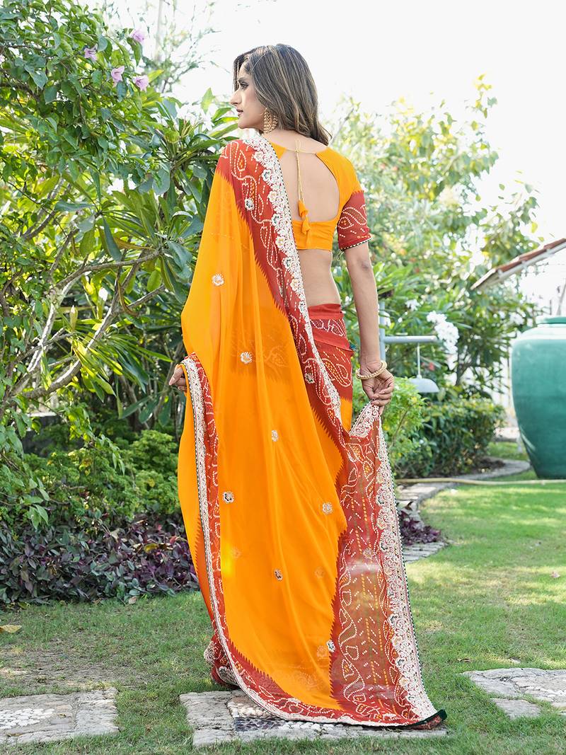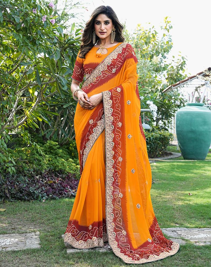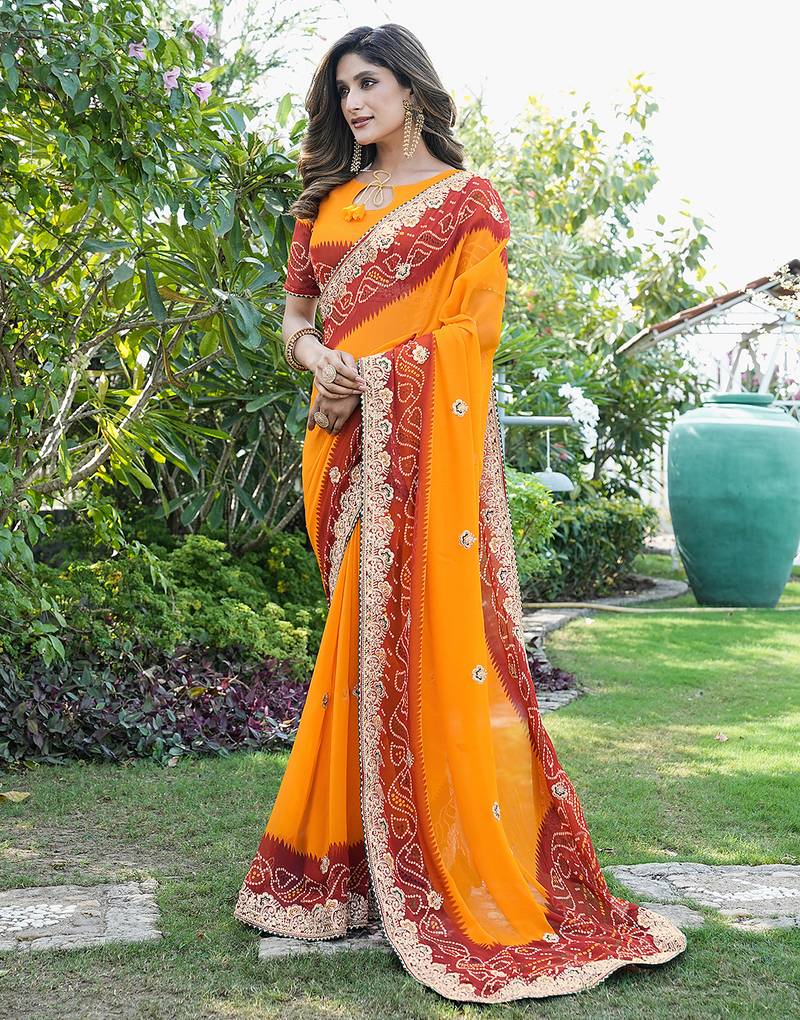 | • | Saree | : | Color- Orange / Fabric- Georgette |